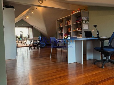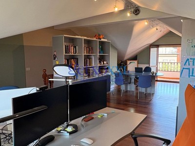 La segunda planta, actualmente diáfana y destinada a zona de trabajo y ocio actualmente, cuenta con un baño completo y dos terrazas con bonitas vistas. A pesar de tener parte abuhardillada, la altura es generosa en casi toda la estancia, lo que permite habilitar fácilmente un dormitorio con salón independiente.