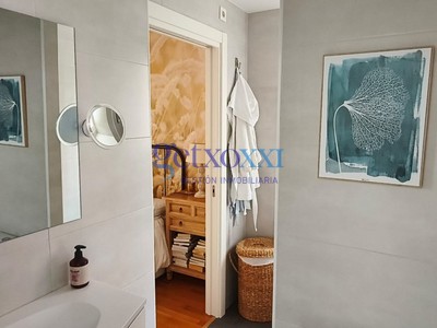 Dormitorio principal con baño en suite de gran tamaño (originalmente dos baños, actualmente unificado para mayor amplitud). Dispone de doble acceso, tanto desde la zona de descanso como desde la zona de día, aportando gran comodidad.